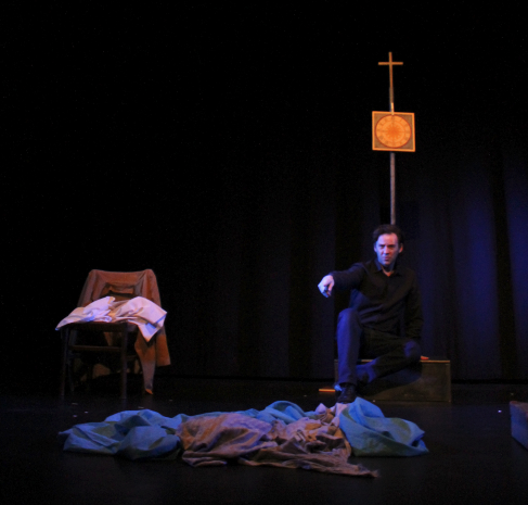 Lo spettacolo: Un racconto in prima persona, un Campanile/Attore che narra la sua storia, con tono ironico, drammatico, cupo e meravigliato, e a far da contorno altri personaggi più o meno importanti. La scenografia è essenziale: una pedana, teli, alcune sedie e una valigia che contiene gli oggetti di scena, ma che simboleggia anche il trasloco forzato che i quasi 700 abitanti di Curon hanno subito.